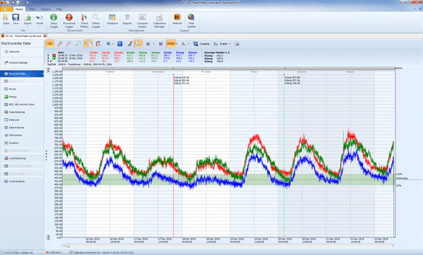EC-7VAR-RS je trifazni zapisovalnik podatkov za napetost in tok, ki uporablja tri fleksibilne Rogowskijeve tuljave in 4 napetostne vode (L1, L2, L3 in nevtralni vod) za povezavo z vašim napajanjem Meri in beleži 3-fazno napetost, 3-fazni tok in PF (faktor moči) na L1/A1. Omogoča beleženje kW, kVAR, kVA, vršne porabe, najvišjih/najnižjih tokov, najvišjih/najnižjih napetosti, PF – vse skupaj z datumi in časi.