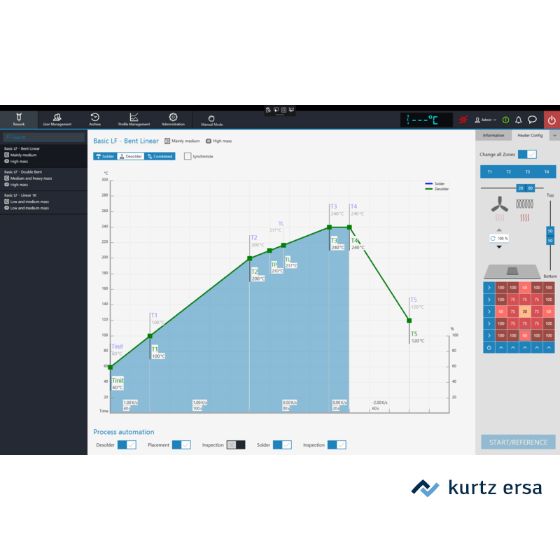 - Avtomatsko odspajkovanje/spajkanje in polaganje SMT elementov (menjava BGA-jev itd) za velika tiskana vezja.