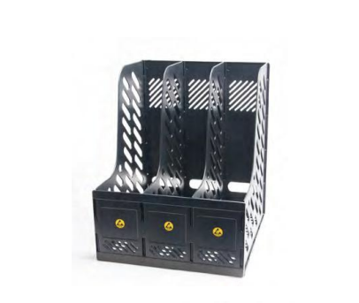 ESD stojalo za revije je namenjeno varnemu shranjevanju in organizaciji dokumentacije v okoljih, kjer je potrebna zaščita pred elektrostatično razelektritvijo. Uporablja se v EPA območjih, proizvodnji elektronike, laboratorijih, servisih in pisarniških delih tehničnih okolij, kjer se ravna z občutljivimi komponentami. Izdelano je iz ESD varnih materialov, ki omogočajo kontrolirano odvajanje statične elektrike ter zmanjšujejo tveganje poškodb elektronskih sklopov. Stojalo omogoča pregledno razporeditev dokumentov, tehničnih listov ali delovnih navodil, kar izboljšuje organizacijo dela in dostopnost informacij. Robustna konstrukcija zagotavlja stabilnost in dolgo življenjsko dobo tudi pri vsakodnevni uporabi. ESD stojalo za revije prispeva k urejenemu, varnemu in učinkovitemu delovnemu okolju.