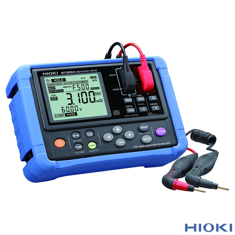 HIOKI BT3554-52 je napreden model baterijskega testerja, ki vključuje vnaprej nastavljene primerjalne vrednosti in izboljšano shranjevanje podatkov. Zasnovan je za merjenje DC napetosti, notranje AC upornosti pri 1 kHz in temperature, kar omogoča celovito analizo stanja baterij.