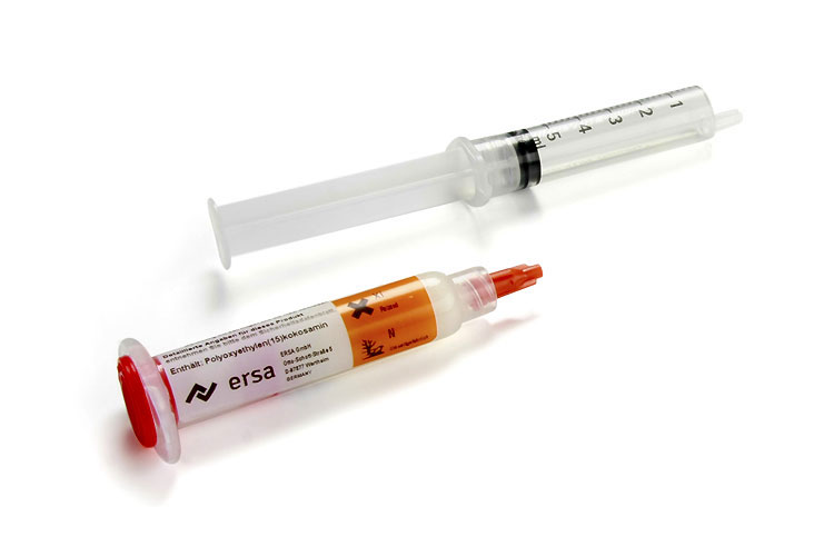Ersa No-Clean fluks in fluks krema sta se izkazala predvsem pri vseh postopkih popravil v SMD tehnologiji. Tako kot vsi Ersa potrošni materiali izpolnjujeta veljavne standarde in zahteve kakovosti. Nanašanje je enostavno in natančno s FLUX-PEN-om ali kartušo, dobavljeno z batom in iglo.