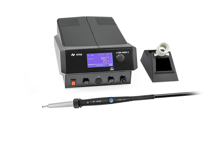 Večkanalna spajkalna in odspajkalna postaja i-CON VARIO 2 MK2 profesionalnemu uporabniku omogoča hkratno uporabo dveh spajkalnih orodij. Poleg nove, ergonomsko zasnovane enote za vroči zrak i-Tool AIR S (200 W) je mogoče hkrati uporabljati še drugo spajkalno orodje, kot je 150 W i-TOOL MK2, idealno za klasične spajkalne aplikacije, ali na novo razvite odspajkalne pincete Chip Tool Vario (80 W). Alternativno je mogoče priključiti tudi druga Ersa spajkalna orodja. Kompaktna napajalna enota, varna glede ESD, ponuja enostaven in pregledno urejen prikaz, ki je pri družini i-CON MK2 standardna lastnost. Tako kot pri večji postaji i-CON VARIO 4 MK2 so na voljo vmesniki za Ersa odsesovalnik spajkalnih hlapov ali infrardečo predgrelno enoto, prav tako pa možnost hitre in varne konfiguracije postaje z microSD pomnilniško kartico.
